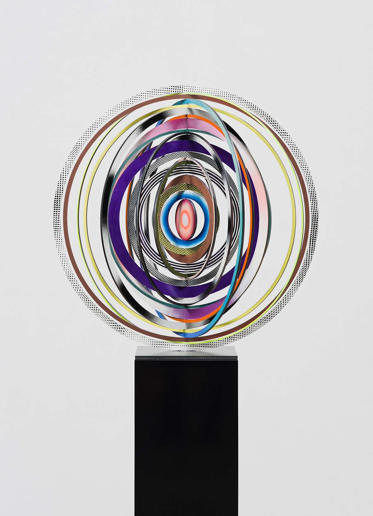 UNTITLED, 2016, OIL, ACRYLICS AND LAQUER ON STEEL, 80 X 80 X 80 CM
